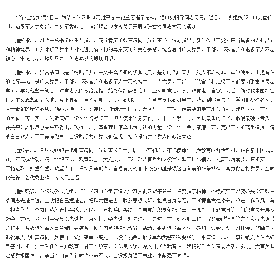 1、①學(xué)習(xí)《中共中央組織部、中共中央宣傳部、退役軍人事務(wù)部、中央軍委政治工作部關(guān)于張富清同志學(xué)習(xí)的通知》