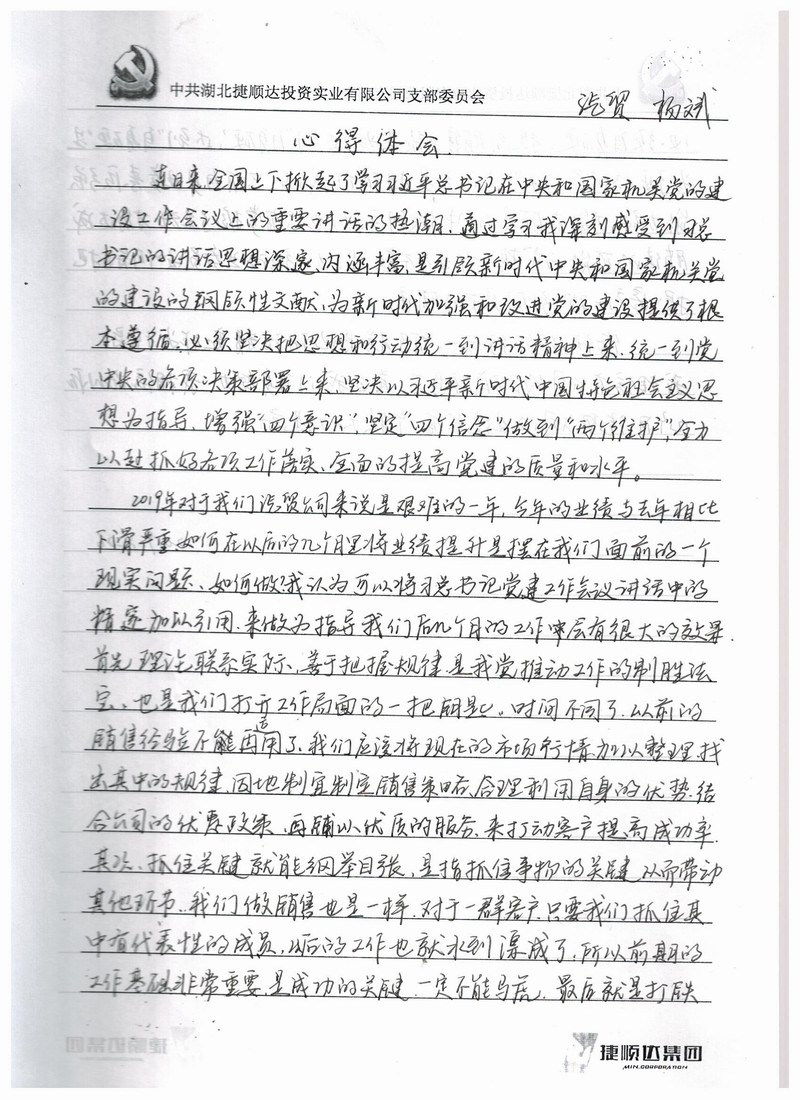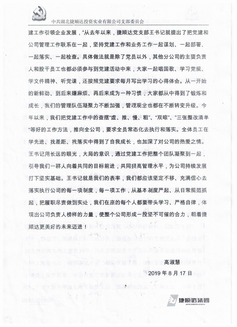 一、支部書記代表捷順達(dá)黨支部班子作對(duì)照檢查