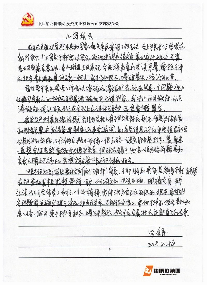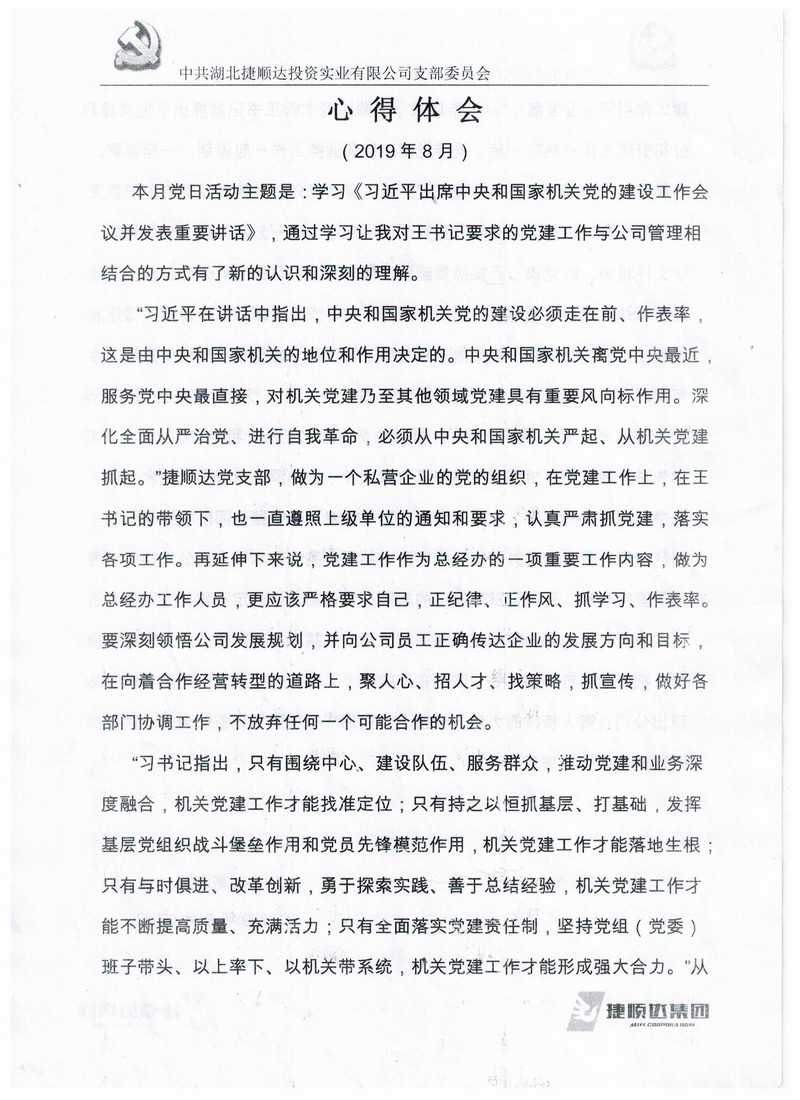 1、談心得體會(huì),本月捷順達(dá)“支部主題黨日”活動(dòng)《心得體會(huì)》評(píng)選,請(qǐng)大家認(rèn)真聽,然后評(píng)出三位優(yōu)秀者進(jìn)行獎(jiǎng)勵(lì)