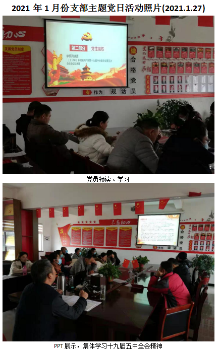 一、認(rèn)真開(kāi)展支部主題黨日。結(jié)合公司實(shí)際,圍繞“黨的十九屆五中全會(huì)”主題開(kāi)展支部主題黨日,認(rèn)真學(xué)習(xí)習(xí)近平總書(shū)記在中央政治局第二十六次集體學(xué)習(xí)講話精神、在中央經(jīng)濟(jì)工作會(huì)議上的講話精神,學(xué)習(xí)黨的十九屆五中全會(huì)精神、省委十一屆八次全會(huì)精神和市委十三屆十一次全會(huì)精神等,及時(shí)跟進(jìn)學(xué)習(xí)省市“兩會(huì)”精神,組織黨員認(rèn)真學(xué)習(xí)《襄陽(yáng)市新型冠狀病毒感染肺炎疫情防控指揮部關(guān)于秋冬季新冠肺炎疫情防控公眾行為指南》等,切實(shí)把思想行動(dòng)統(tǒng)一到黨中央、省委、市委和區(qū)委的決策部署上來(lái),不斷增強(qiáng)“四個(gè)意識(shí)”,堅(jiān)定“四個(gè)自信”,堅(jiān)決做到“兩個(gè)維護(hù)”。