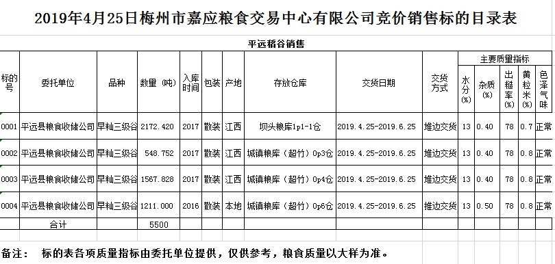 交易時(shí)間和地點(diǎn):2019年4月25日(星期四)上午10時(shí)。廣東省梅州市彬芳大道南161號(hào)梅州市糧食交易中心3樓。