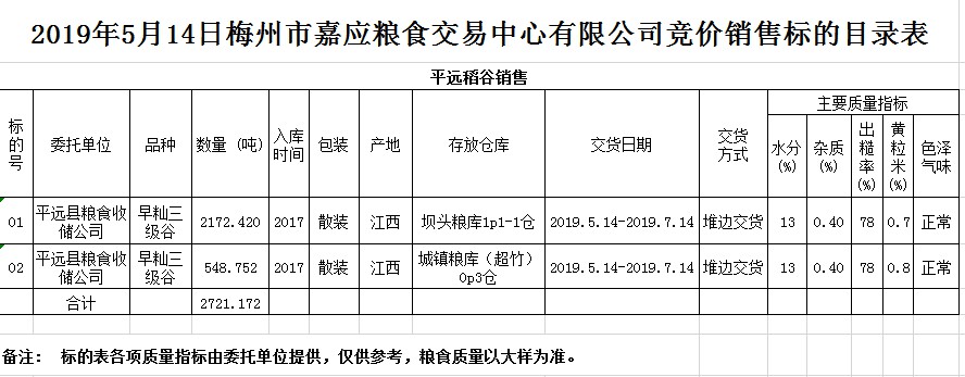 交易時(shí)間和地點(diǎn):2019年5月14日(星期二)上午10時(shí)15分。廣東省梅州市彬芳大道南161號梅州市糧食交易中心3樓。