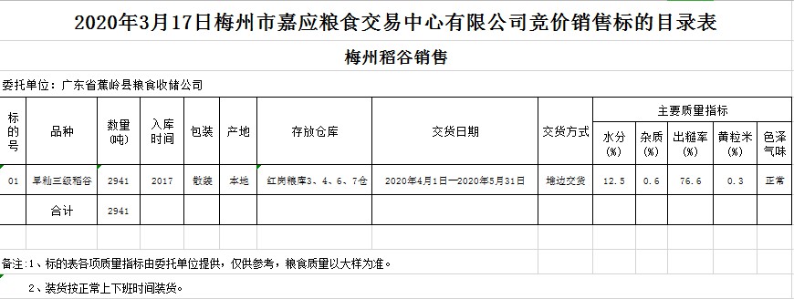 交易時(shí)間和地點(diǎn):2020年3月17日(星期二)上午10時(shí)15分。廣東省梅州市彬芳大道南161號(hào)梅州市糧食交易中心3樓。