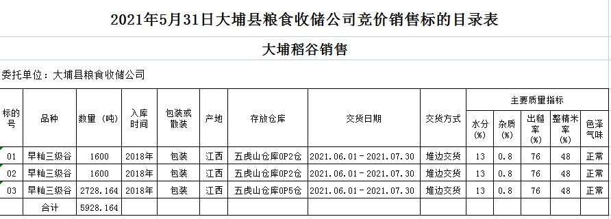 受客戶委托,梅州市嘉應糧食交易中心有限公司定于2021年5月31日(星期一)舉辦糧食競價交易會。大埔縣糧食收儲公司擬銷售2018年早秈稻5928.164噸。