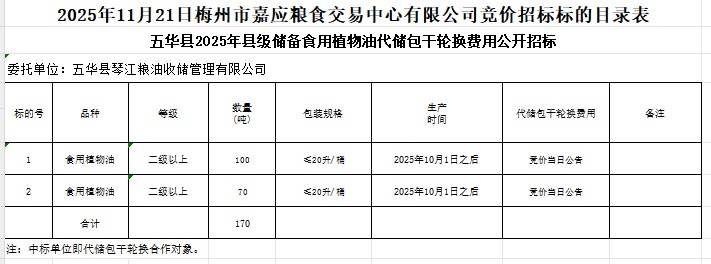 五華縣2025年縣級儲備食用植物油采購及代儲包干輪換費用公開招標公告