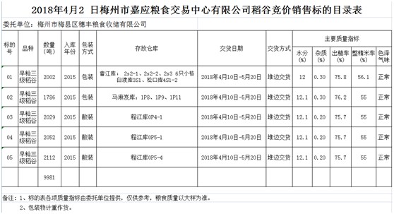 受客戶委托,梅州市嘉應(yīng)糧食交易中心有限公司定于2018年4月9日(星期一)舉辦糧食競價(jià)交易會(huì),梅州市梅縣區(qū)穗豐糧食收儲(chǔ)有限公司擬銷售早秈稻9981噸。